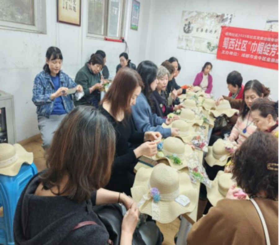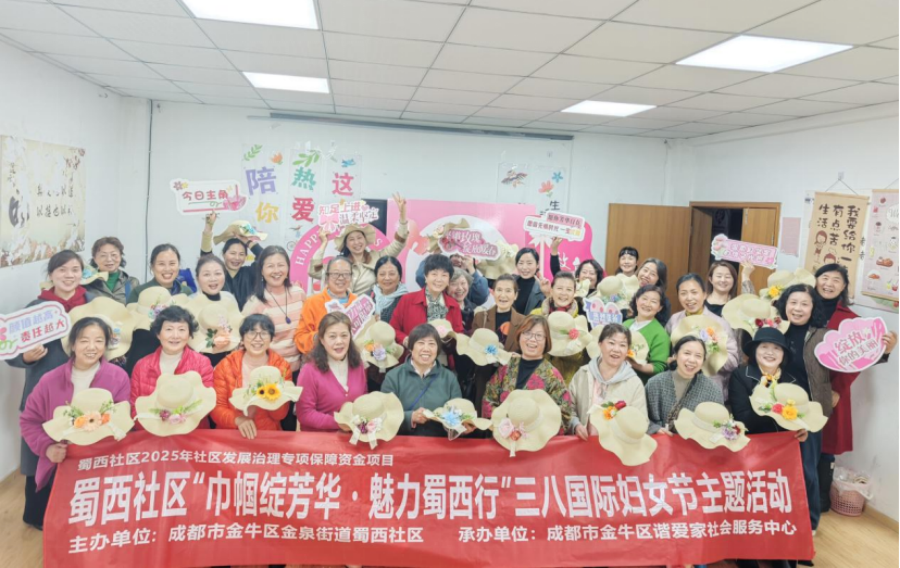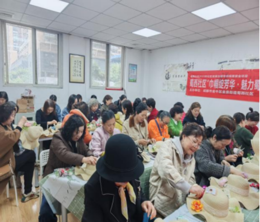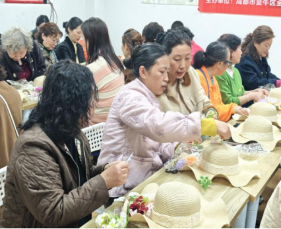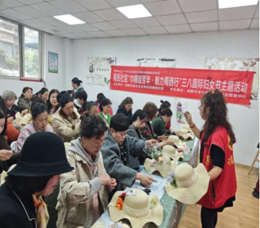 阳春三月,芳华竞绽。在三八国际妇女节来临之际,2026年3月6日上午,金泉街道蜀西社区主办,成都市金牛区谐爱家社会服务中心承办的“巾帼绽芳华・魅力蜀西行”主题活动在蜀西社区活动室开展。活动以花艺草帽DIY为载体,35位社区女性居民齐聚,在指尖创作中传递节日暖意。