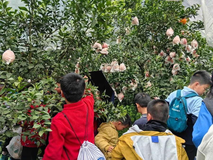 科技体验之后,大家步入田园,开启自然科普学习之旅。在田间地头,孩子们认真观察土豆的生长形态,了解其从种植到收获的全过程。随后在专业讲解老师的带领下,大家走进耙耙柑园一起了解作为耙耙柑核心产区,蒲江在农业绿色发展方面探索出了“两个替代”(有机肥替代化肥、绿色防控替代化学防治)和“三个零”(零化学肥料、零化学农药、零植物生长调节剂)的特色路径。通过现场讲解,孩子们对生态种植理念有了初步认识,也在潜移默化中增强了对土地、自然与可持续发展的尊重与理解。