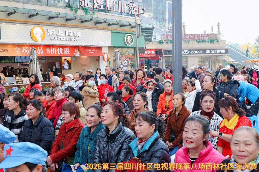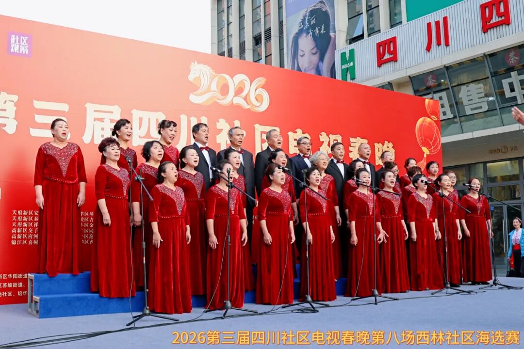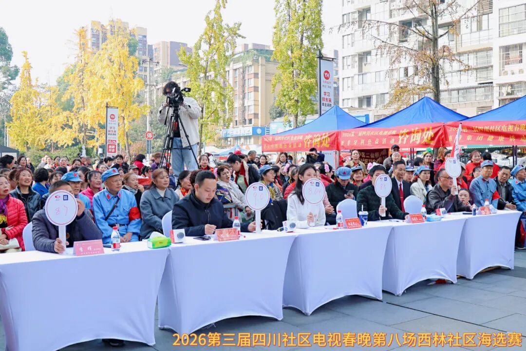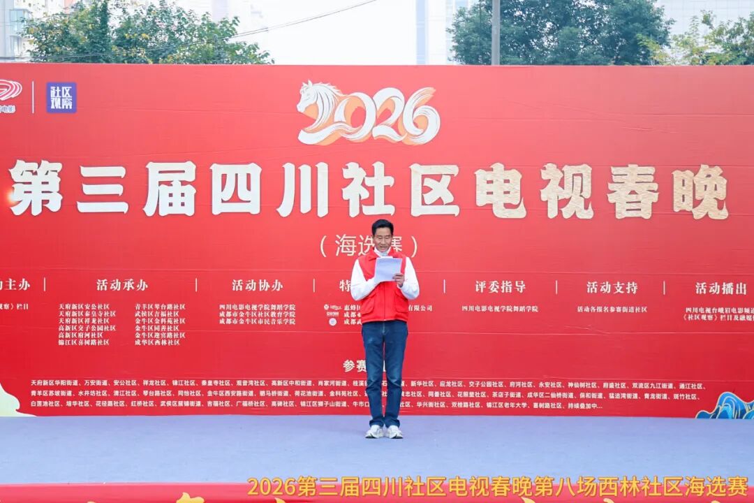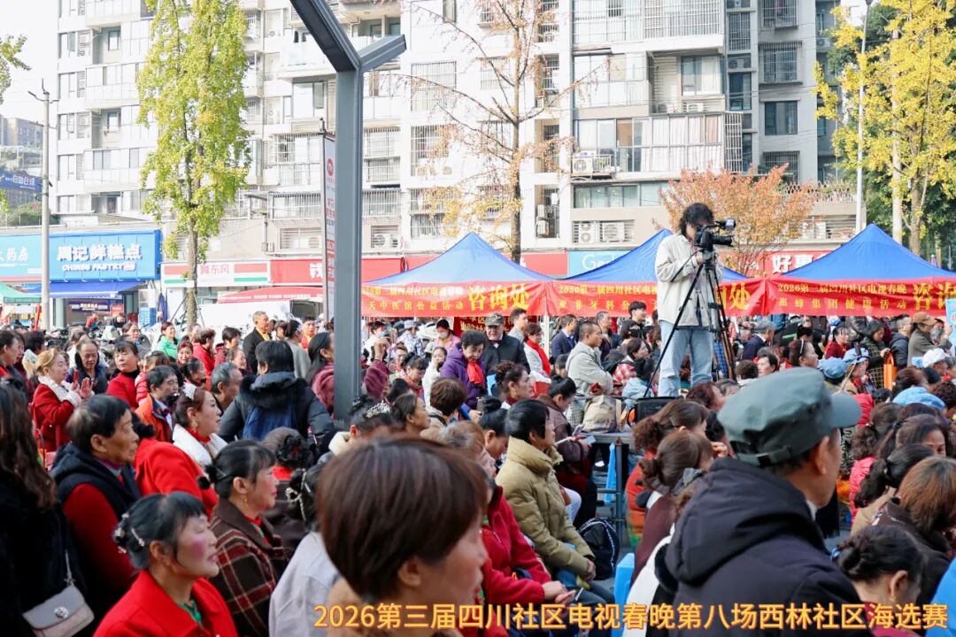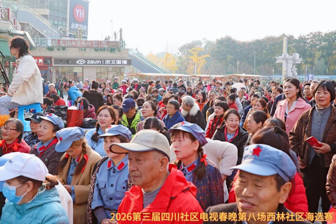 霜华轻覆,暖阳微沐,冬日的蓉城被一层诗意的薄雾温柔包裹。11月28日午后,当成华区青龙商业中心广场沐浴在18度的和煦阳光下,这里早已升腾起灼灼暖意。下午1时20分,当初冬的暖阳遇见社区文化的热流,2026第三届四川社区电视春晚第八场海选赛在万众期待中盛大启幕——来自成华区、锦江区、金牛区各街道社区的24支文艺团队、超五百名表演者,与现场约三百名观众共同用四个小时的倾情演绎,在这个温暖的冬日谱写了一曲动人的社区文化乐章。