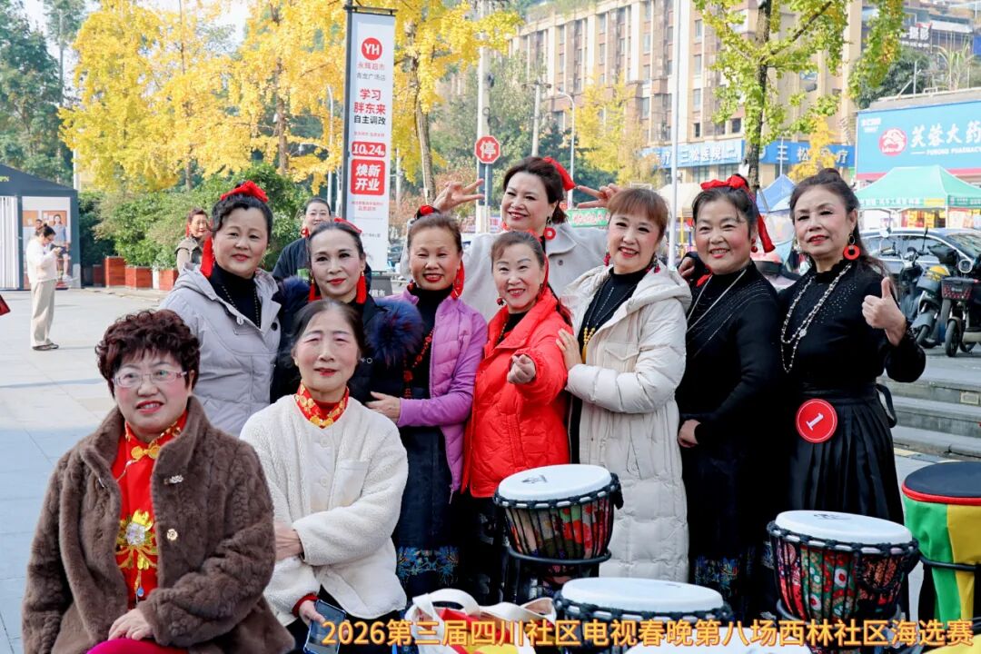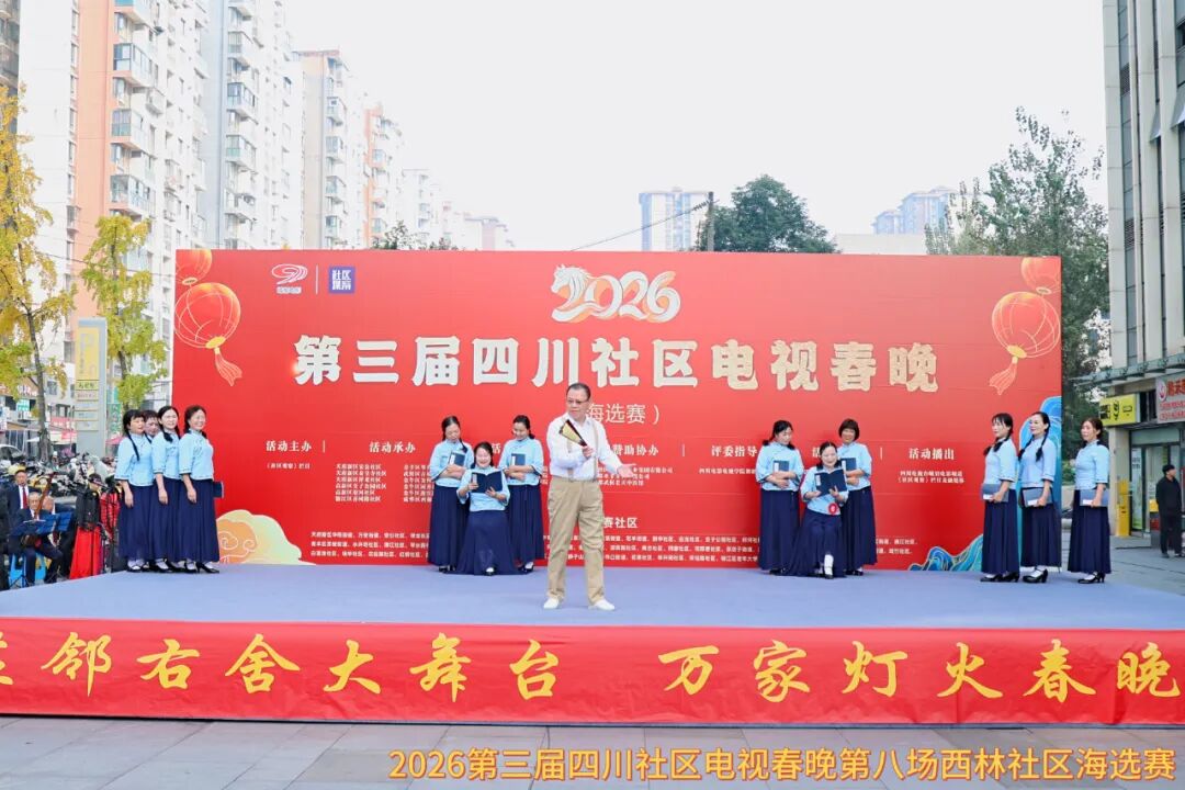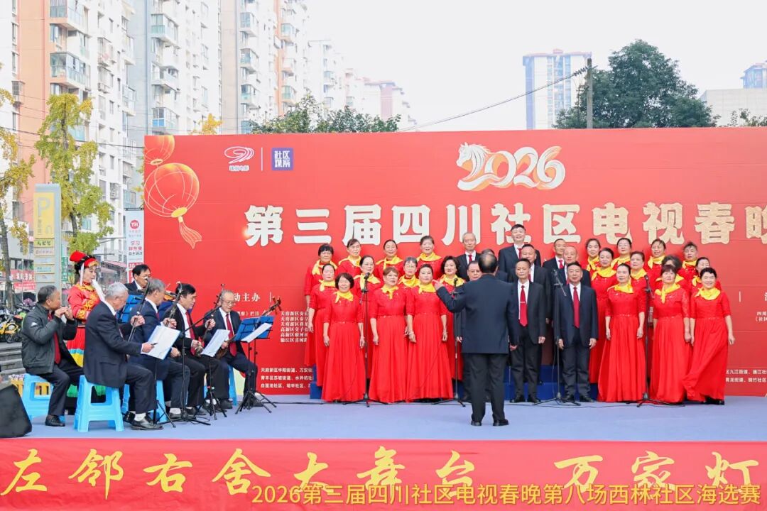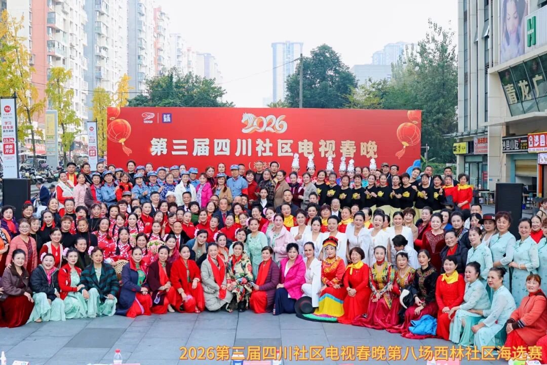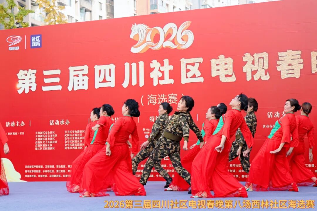 霜华轻覆,暖阳微沐,冬日的蓉城被一层诗意的薄雾温柔包裹。11月28日午后,当成华区青龙商业中心广场沐浴在18度的和煦阳光下,这里早已升腾起灼灼暖意。下午1时20分,当初冬的暖阳遇见社区文化的热流,2026第三届四川社区电视春晚第八场海选赛在万众期待中盛大启幕——来自成华区、锦江区、金牛区各街道社区的24支文艺团队、超五百名表演者,与现场约三百名观众共同用四个小时的倾情演绎,在这个温暖的冬日谱写了一曲动人的社区文化乐章。