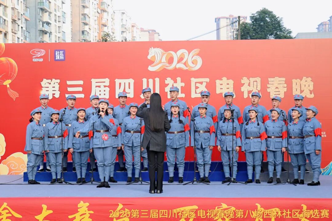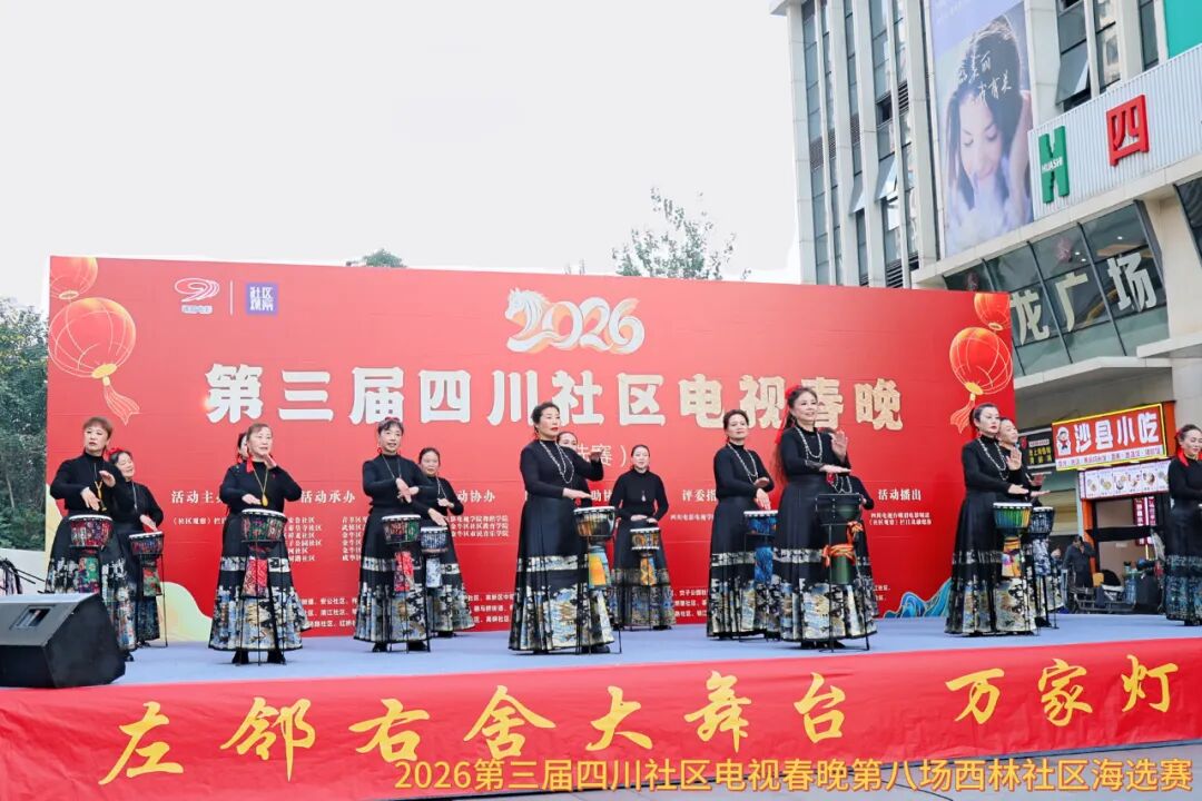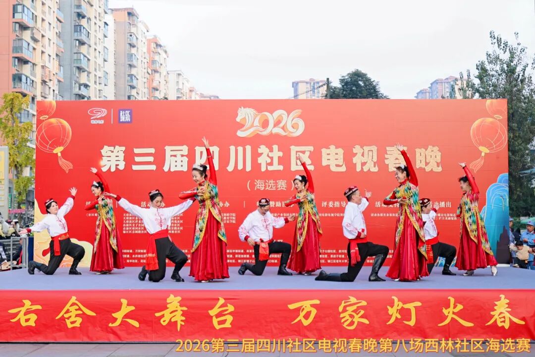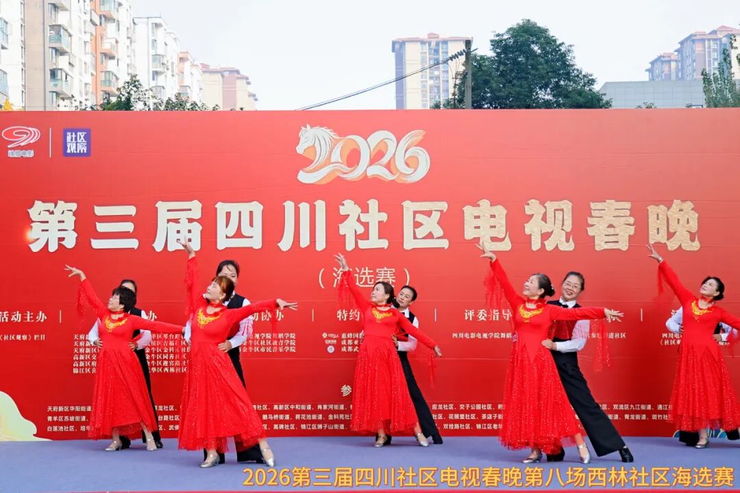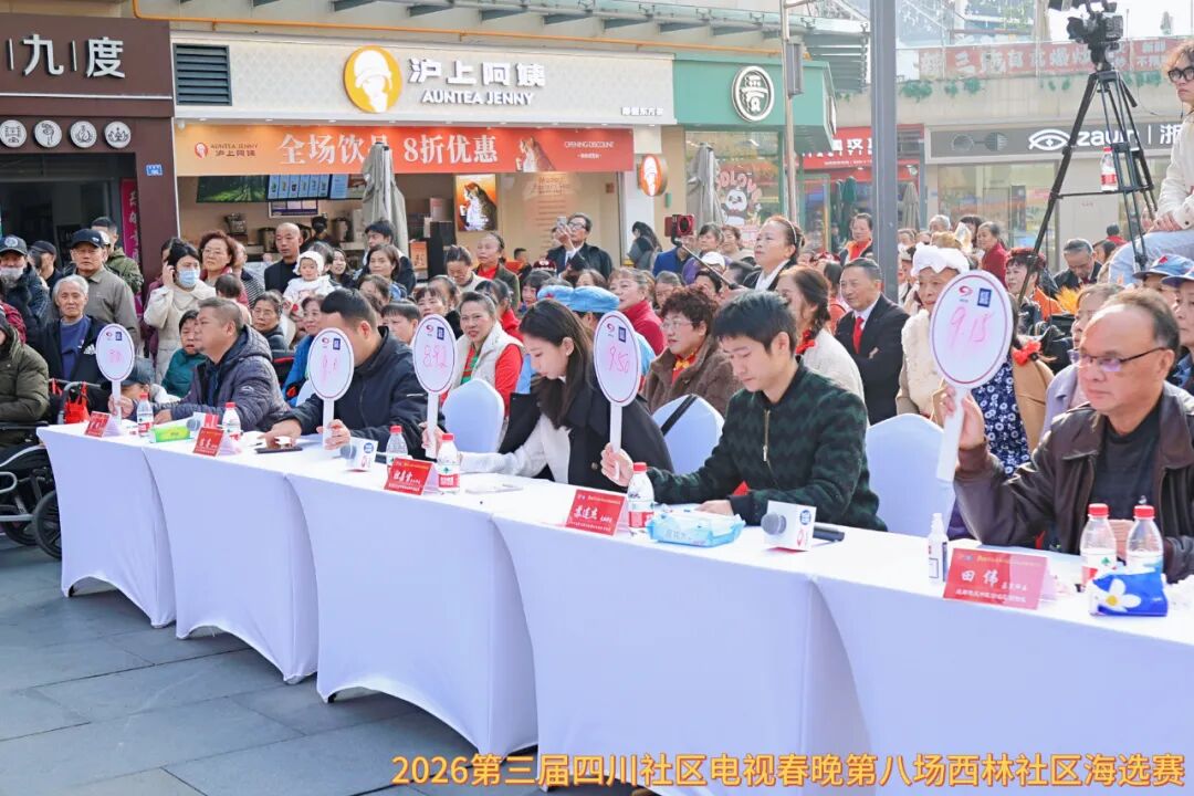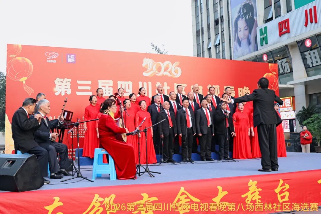 霜华轻覆,暖阳微沐,冬日的蓉城被一层诗意的薄雾温柔包裹。11月28日午后,当成华区青龙商业中心广场沐浴在18度的和煦阳光下,这里早已升腾起灼灼暖意。下午1时20分,当初冬的暖阳遇见社区文化的热流,2026第三届四川社区电视春晚第八场海选赛在万众期待中盛大启幕——来自成华区、锦江区、金牛区各街道社区的24支文艺团队、超五百名表演者,与现场约三百名观众共同用四个小时的倾情演绎,在这个温暖的冬日谱写了一曲动人的社区文化乐章。