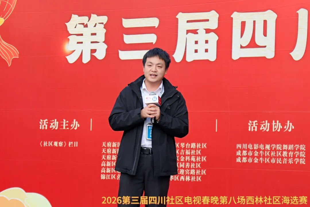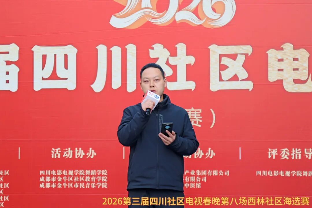 在洋溢着欢声笑语的西林社区广场,青龙街道西林社区党委委员、居委会副主任周猛动情致辞:“这个见证我们日常生活的家园广场,今天因艺术而更加璀璨。感谢每一位用心准备的表演者,是你们让这个冬日午后充满温情与感动。社区电视春晚不仅展示才艺,更是连接邻里情感的桥梁,让我们共同书写属于社区居民的文化篇章!”