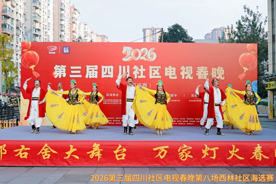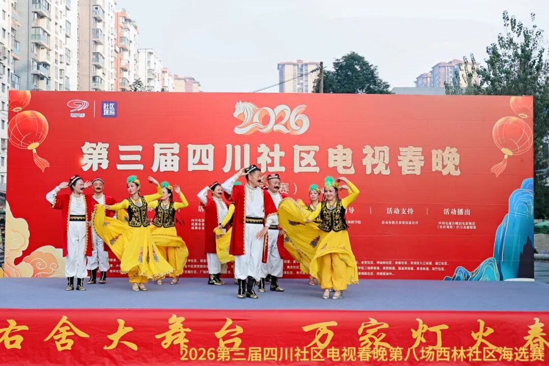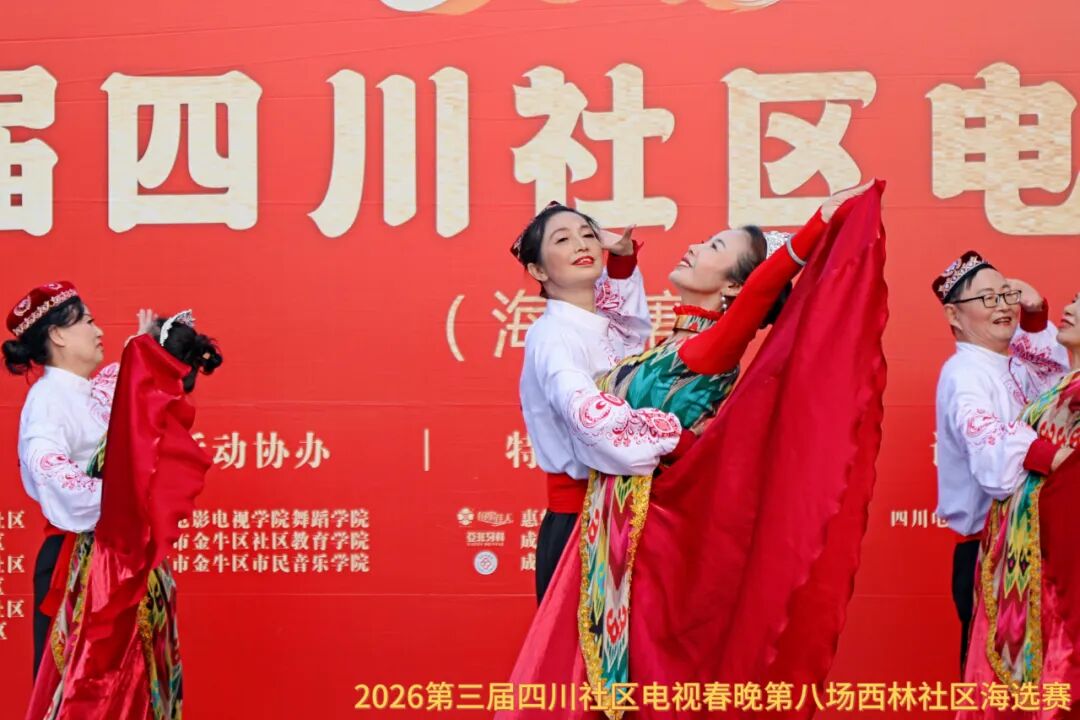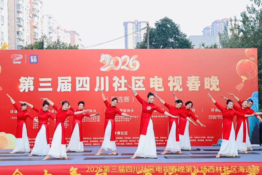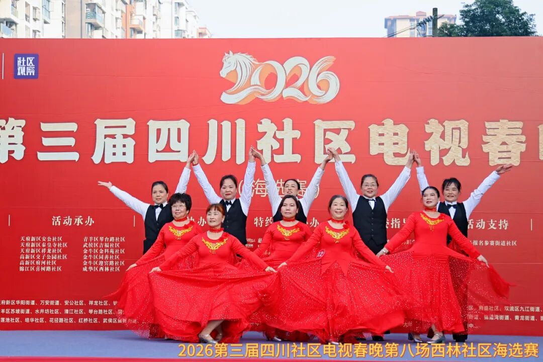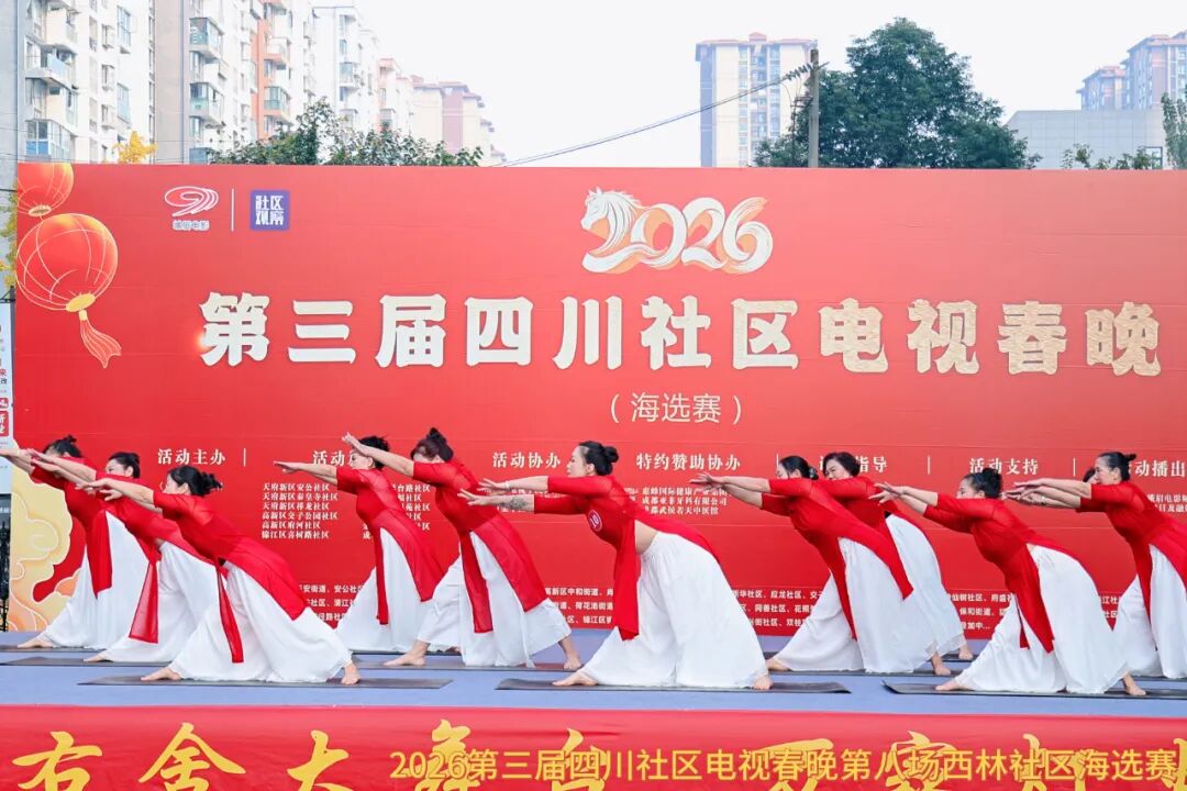 从首届的破土萌芽到第三届的华彩绽放,四川社区电视春晚历经三年淬炼,已成为扎根社区、温润邻里的现象级文化品牌。本届活动延续“电视+社区”的独特模式,由四川峨眉电影频道《社区观察》栏目倾力打造,由天府新区安公社区、天府新区秦皇寺社区、天府新区祥龙社区、高新区交子公园社区、高新区府河社区、青羊区琴台路社区、武侯区吉福社区、锦江区喜树路社区、金牛区金科院社区、金牛区同善社区、金牛区迎宾路社区、成华区西林社区等共12家标杆社区携手共建,四川电影电视学院舞蹈学院提供全程艺术指导,成都市金牛区社区教育学院、市民音乐学院特约协办,共同构筑起属于百姓的梦想舞台。