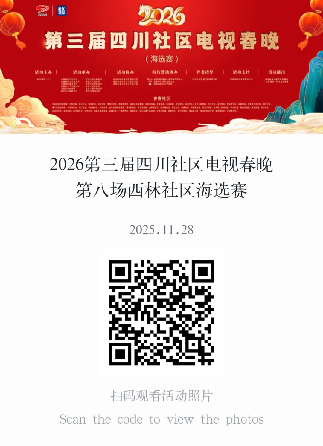 夕阳西下,温暖犹存。这场在西林社区奏响的艺术华章虽已落幕,但社区文化的暖流将继续奔涌。12月5日,第九场海选将在金牛区金科苑社区继续绽放。